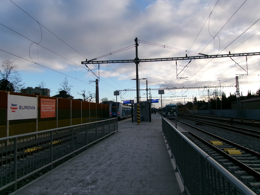 Po prohlídce lávky jsme dorazili na druhý sraz. Zde se k nám přidali další dva účastníci a kolem zbytku bývalé výpravní budovy z počátku 20. století (poškozena při náletu v srpnu 1944 a nahrazena v 50. letech současnou v jiné poloze) jsme došli na novou zastávku Pardubice centrum právě včas, abychom stihli odjezd předchozího rychlíku Arriva do Liberce. Zde jsme se přivítali s dalším účastníkem a prohlédli si i místo, kde se v loni v červnu stala dost diskutovaná nehoda. Ona výhybka, na které se srazil vlak osobní dopravy s nákladním, je přímo u zastávky. Posledním přímým „zážitkem“ pro některé účastníky pak bylo první projetí nejnovější části naší železniční sítě i když je prakticky celá v rámci pardubického nádraží. Na hlavním nádraží přistoupil jediný účastník z 3. srazu, který tuto jízdu pojal jako součást cesty s dárky od „Ježíška“ do západních Čech. Při přestupu v Hradci se k nám přidal ještě Jarda.