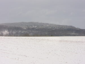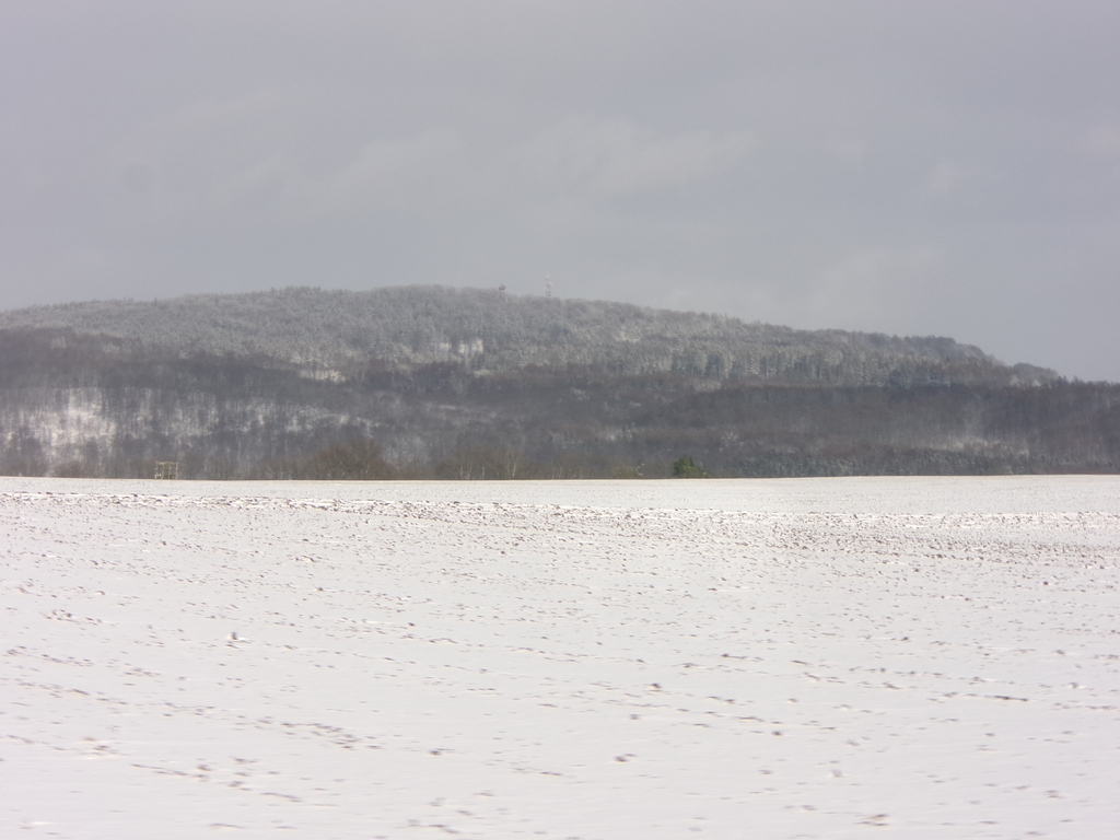 Kousek za Jičínem se nám nejprve objevil pohled k severu k hoře Tábor na níž je rozhledna (a vysílač).