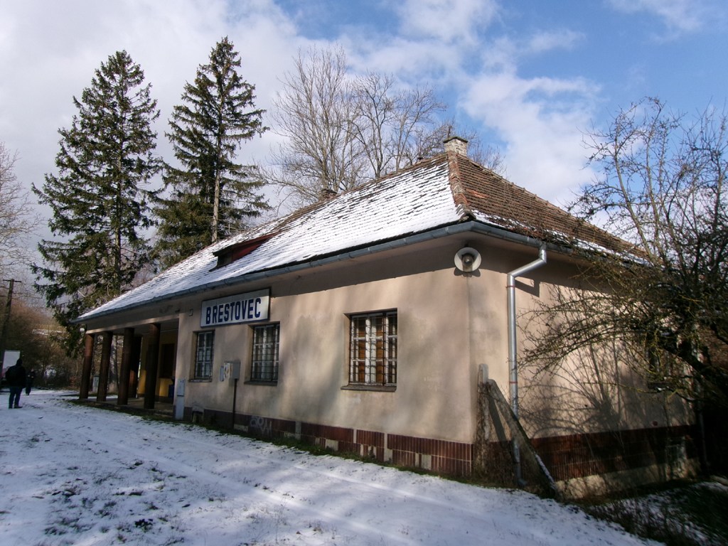 Odtud jsme to měli již blíže k zastávce Brestovec, kde jsme stihli dorazit ještě před průjezdem vlaku do Myjavy, což byla naše souprava, kterou jsem se měli vracet. Po důkladné prohlídce zastávky a částečně i úseku k tunelu Generála Milana Rastislava Štefánika, který začíná kousek od zastávky směrem k nám, jsme počkali na náš vlak a dojeli zpět do Veselí. Zde jsme „přestoupili“ na vlak do Strážnice (ve skutečnosti to však byla stejná jednotka, jen to nebylo nikde prezentováno, takže jsme z ní vystoupili).